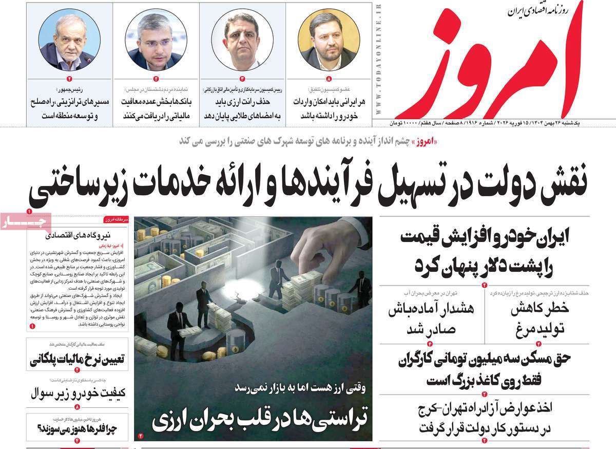 صفحه نخست روزنامه های اقتصادی وسیاسی یکشنبه ۲۶ بهمن ۱۴۰۴