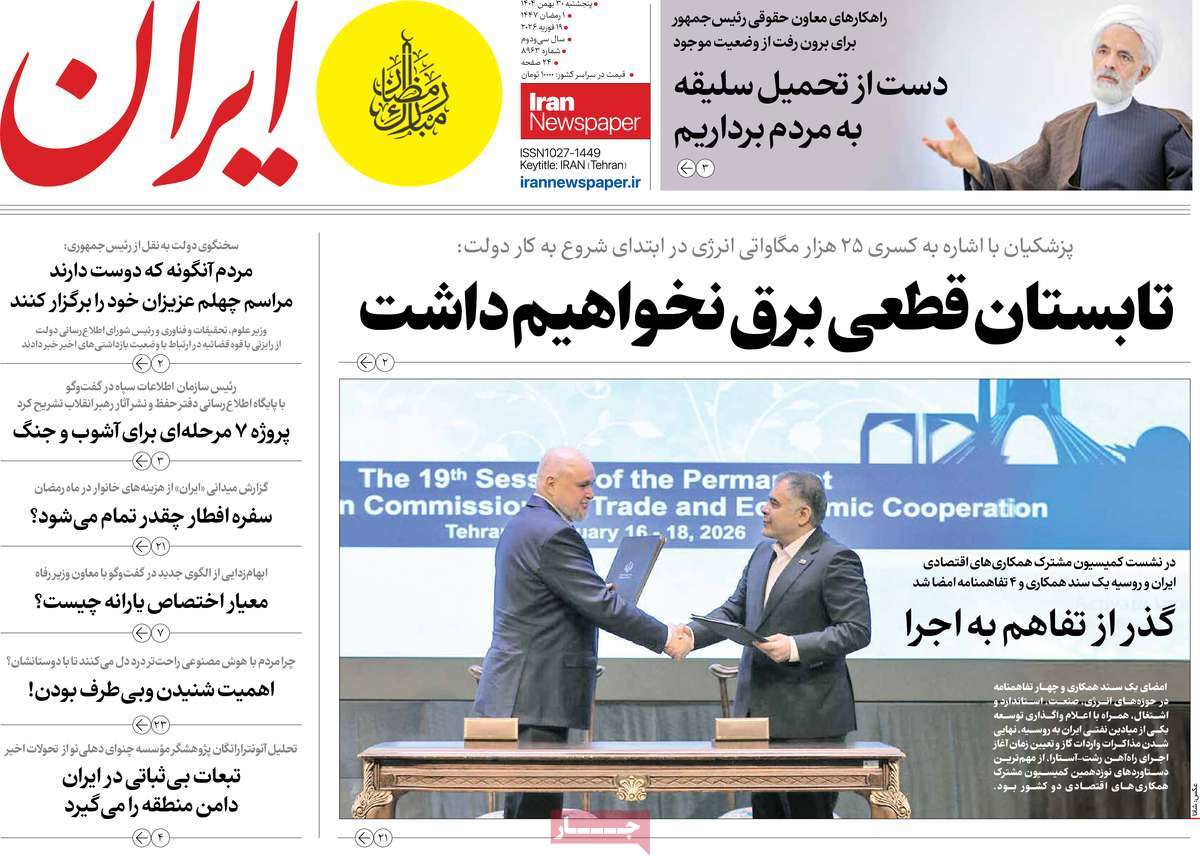 صفحه نخست روزنامه های اقتصادی وسیاسی پنجشنبه ۳۰ بهمن ۱۴۰۴