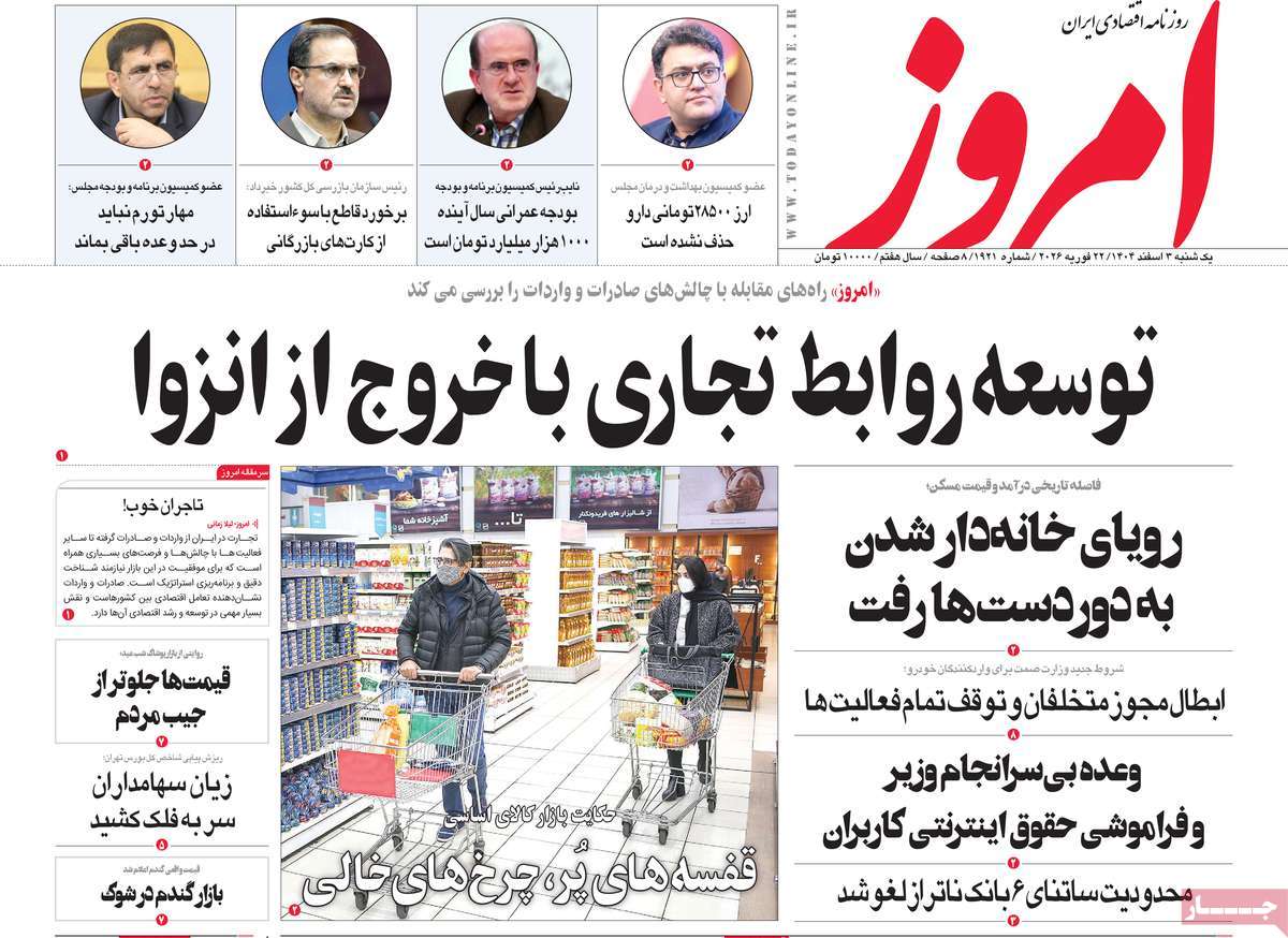 صفحه نخست روزنامه های اقتصادی وسیاسی یکشنبه ۳ اسفند ۱۴۰۴