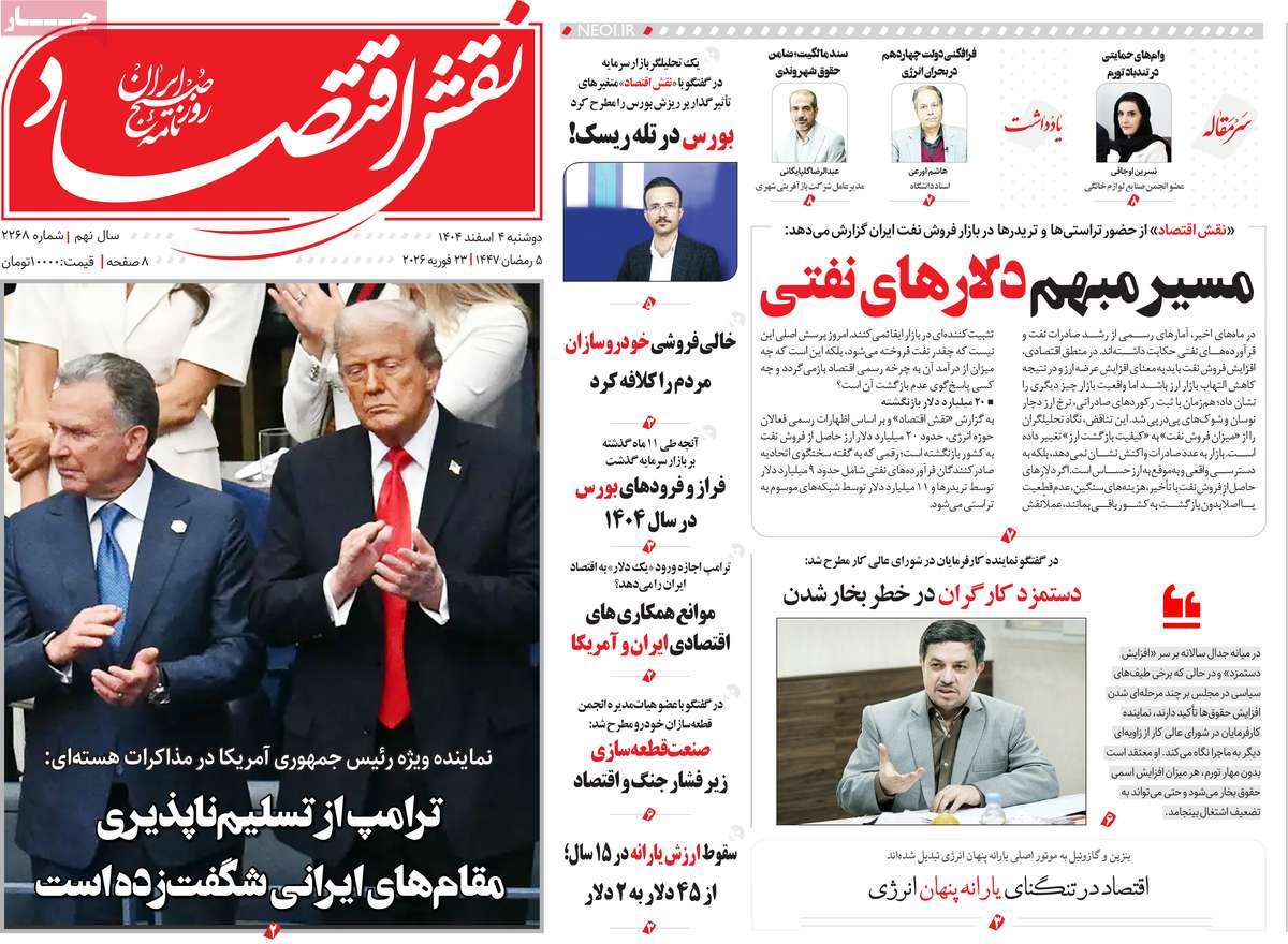 صفحه نخست روزنامه های اقتصادی وسیاسی شنبه ۲ اسفند ۱۴۰۴
