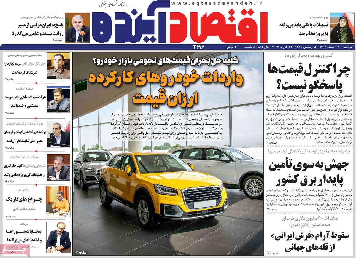 صفحه نخست روزنامه های اقتصادی وسیاسی یکشنبه ۳ اسفند ۱۴۰۴